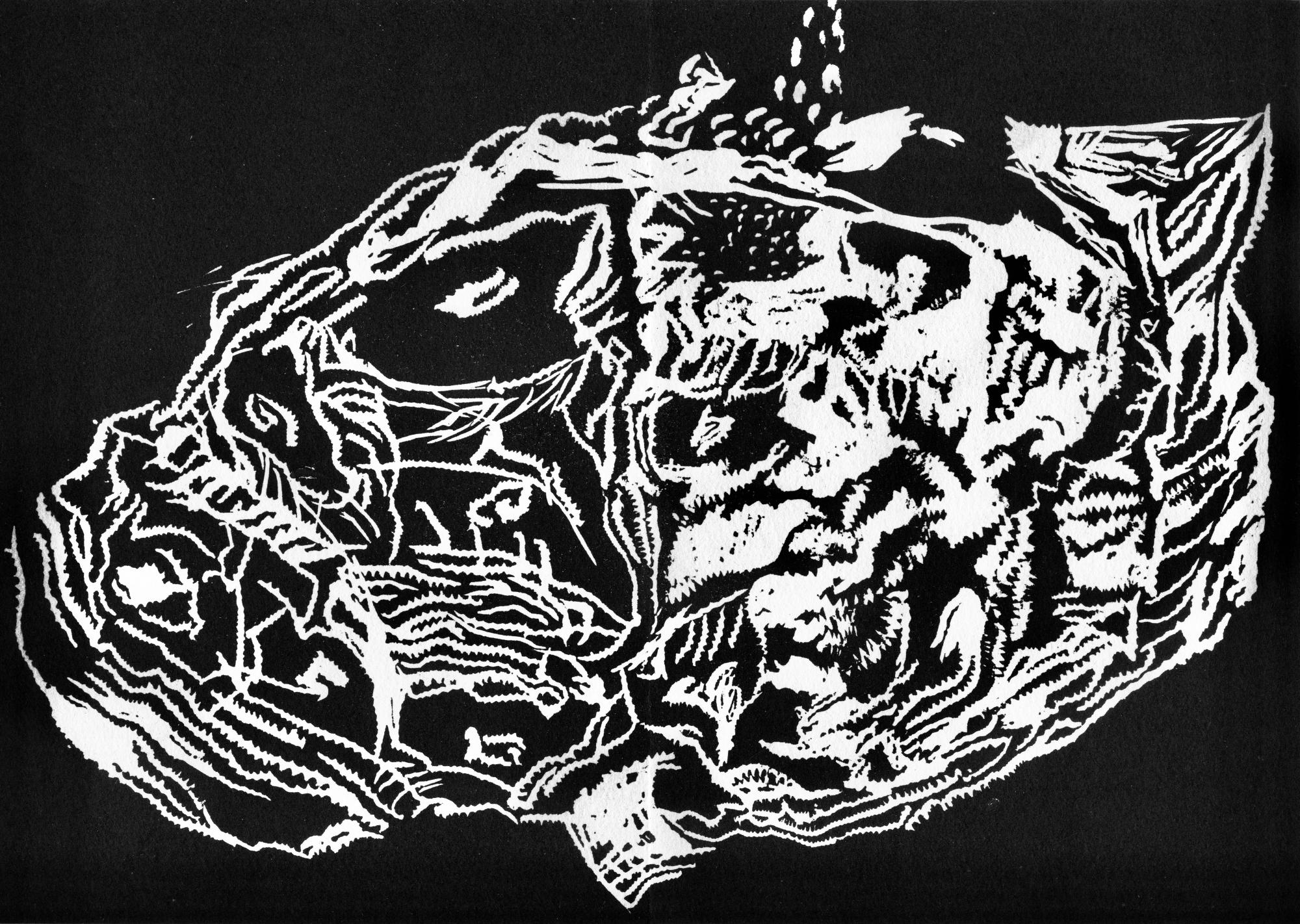 Linocut translated into a Riso print, A4 size.